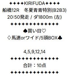 - 02/12 船橋12R ワイド 2,400円的中