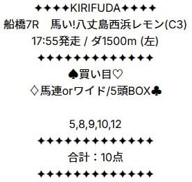 - 02/13 船橋7R ワイド 5,800円的中
