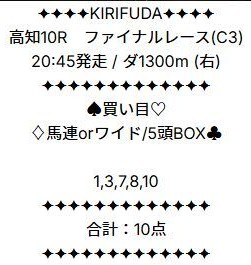 今回は2025年12月13日の地方競馬(高知4R)の買い目を購入いたしました。