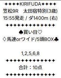 「『キリフダ』というだけあって、騎手同士の駆け引きまで計算されているような買い目。三連単で50万超えの払い戻しは人生初でした。」