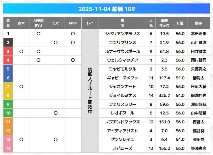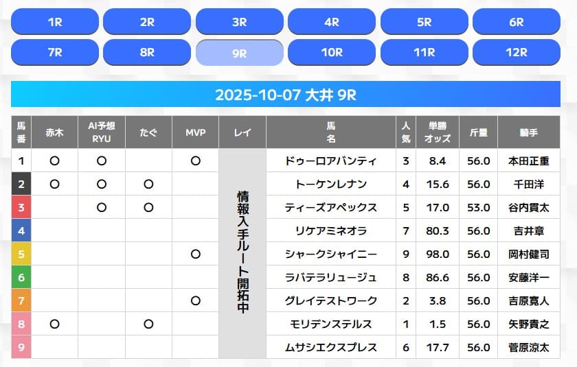 全部手を出すとさすがに馬券代もかかるし、せめて本命レースとか推しレースを教えてくれると助かるかな。