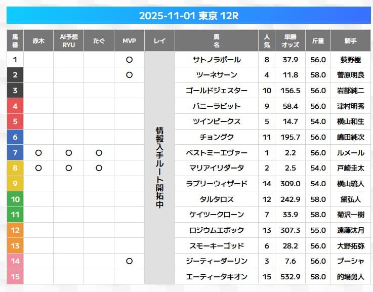 データ分析というよりも、プロの感覚と経験が重なった馬を一目で見ることができました。