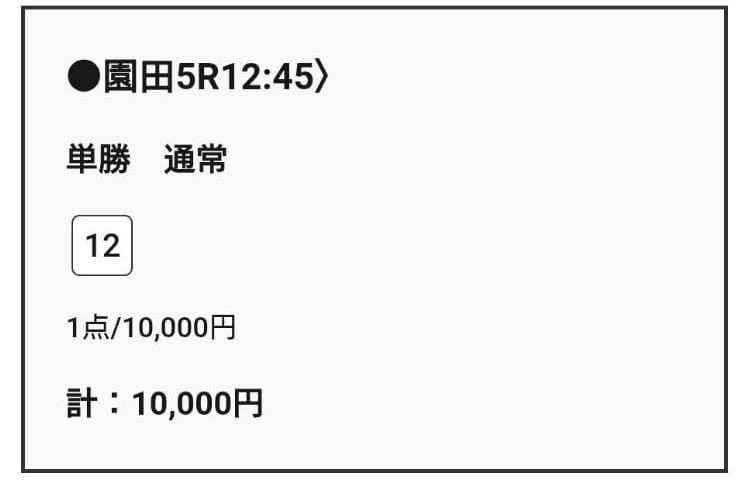 - 12/02 園田5R 単勝 ハズレ