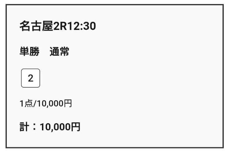 - 12/04 名古屋2R 単勝 25,000円的中