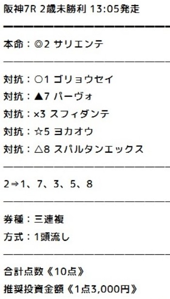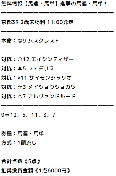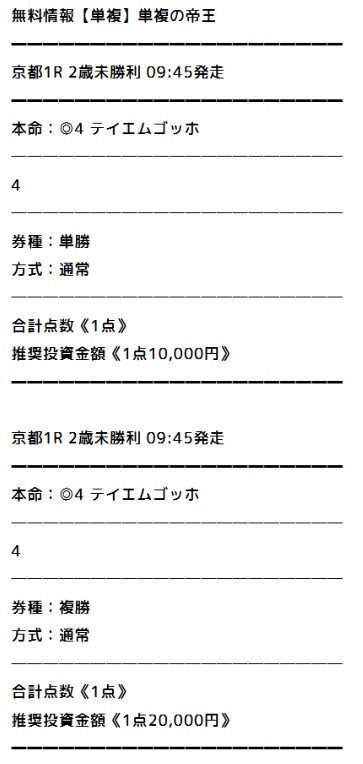 - 11/02 京都1R 単勝・複勝 63,000円的中