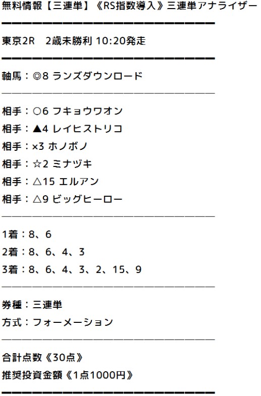 ぶっちゃ競馬では引き続き、みどりの的中らんどの無料予想を実際に購入し、同条件で検証を行っています。