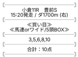 人気馬だけでなく、妙味のある穴も含めた構成で、配当バランスを意識した買い目だと感じました。
