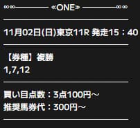 また、登録特典としてONEの厳選3点予想が貰えるので、まずは無料予想を試してみたいという方にはピッタリです。