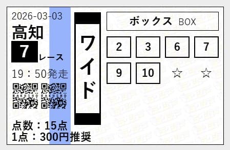 - 03/03 高知7R ワイド 5,910円的中