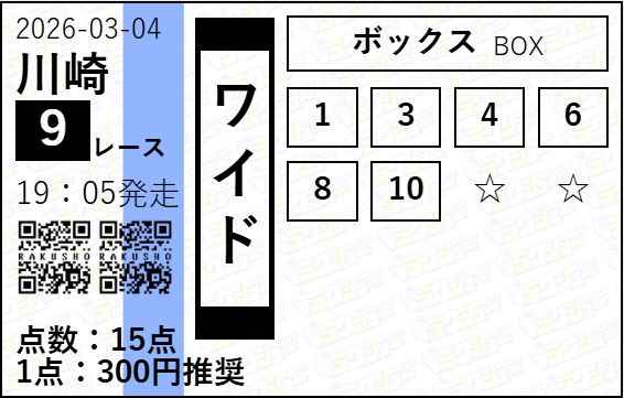 - 03/04 川崎9R ワイド 1,110円的中