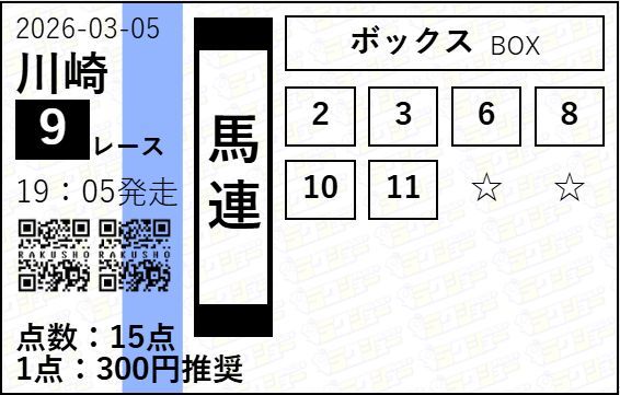 - 03/05 川崎9R ワイド 4,260円的中