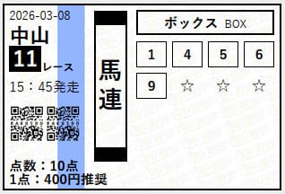 - 03/07 中山11R ワイド 6,690円的中