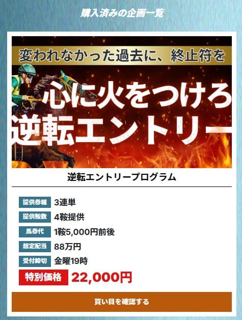 さらに、有料プラン「逆転エントリープログラム」では4戦全勝。