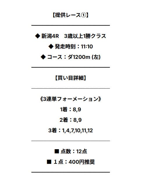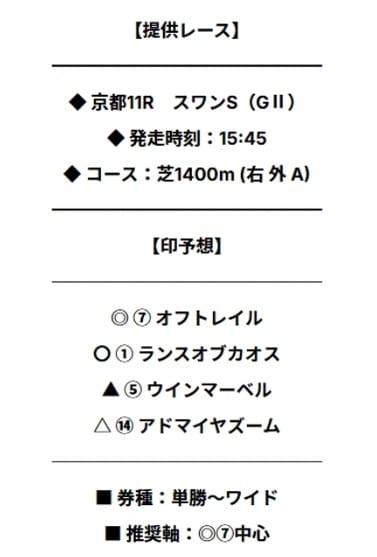 4頭に印を打つシンプルなスタイルで、券種指定はなし。