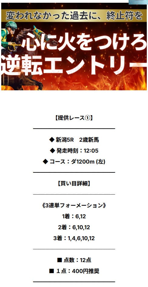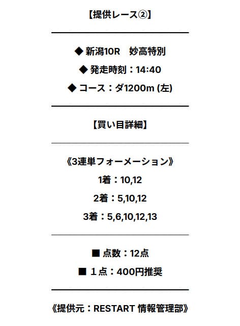リスタートの予想は果たして本当に競馬で負けてきた人でも再出発できるサイトなのか、まずは無料予想を使ってみた結果から紹介します!