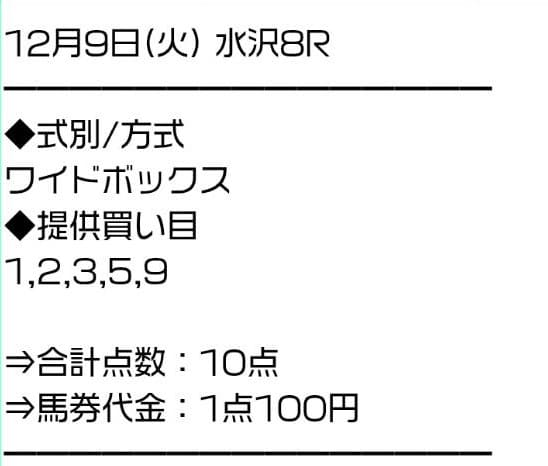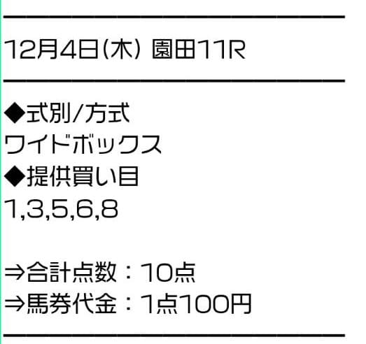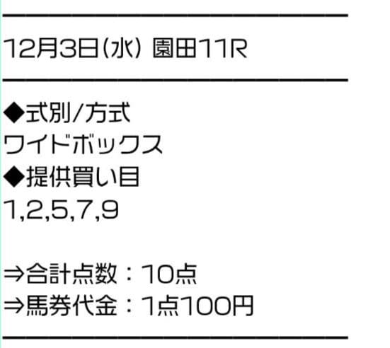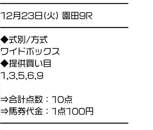 「無料予想だけで何度も的中していて、トータルでもプラス収支になっています。特にワイド中心で点数も多すぎないので買いやすく、資金が少なくても続けやすいのが助かります。コツコツ当てて資金を増やせるのは安心感がありますね。」