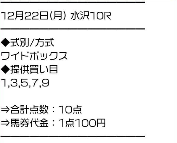 | 王者の直感 | 500,000円 | 4,800,000円 | 三連単 | 5,000円以内 |