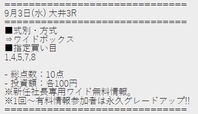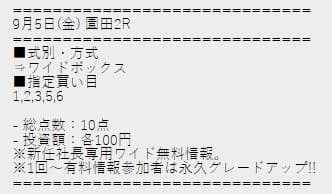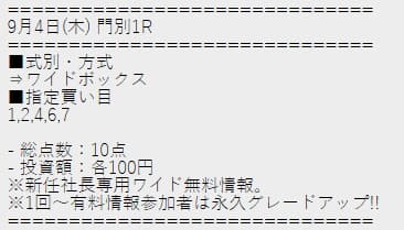 社長競馬では無料予想の分母が多い分、比較的安定した買い目が提示されるケースが多いとのこと。