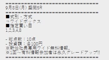 - 09/08 盛岡5R ワイド 320円的中