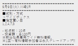 - 09/09 川崎1R ワイド 860円的中
