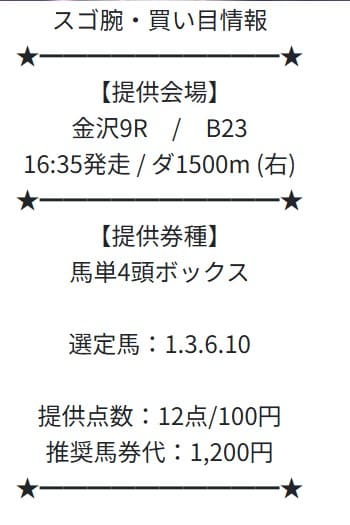 スゴ腕の予想は“数打って当てる”というよりも、一発の破壊力に重点を置いており、ギャンブル性を楽しむ層からの支持が強い印象です。