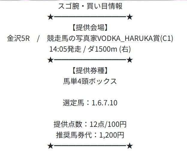 なぜこの予想なのかは企業秘密にしている部分が多く、多少不安な気持ちで馬券を購入しなければならないと感じました。