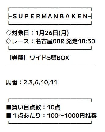 初回からスーパーマンバケンの宣言どおり、波乱のレースを見事に当てることができたことで、今後の検証にも期待が持てます。