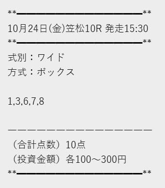 | 公開時間 | 地方競馬:当日13:00~ 中央競馬:前日20:00~ |