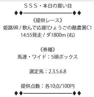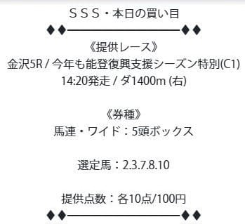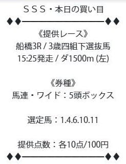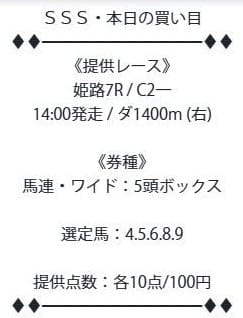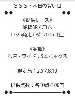 トリプルエス(SSS)の無料予想は、AI解析を軸に選ばれた5頭構成のワイドBOXが基本スタイル。