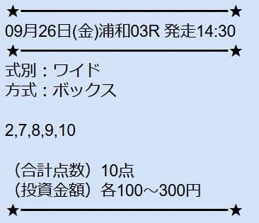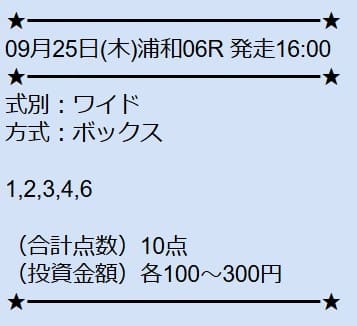 - 09/25 浦和6R ワイド 8,500円的中