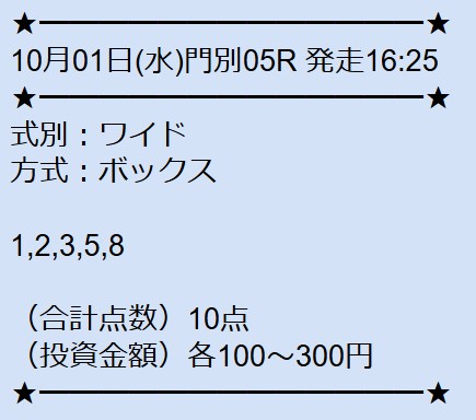 - 10/01 門別5R ワイド 550円的中