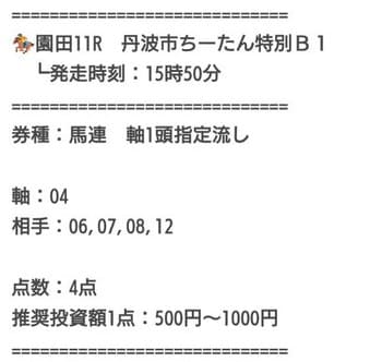 点数が少ないため、指示通りに買えば馬券代をコントロールしやすく、とりあえず当てたい人には分かりやすい設計になっています。
