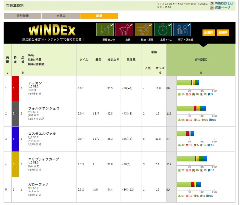 無料予想は「WINDEX(ウィンデックス)」という独自指数をもとに算出されており、