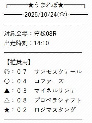 番人気の馬、完全にノーマークでした。 でも提供の中ではちゃんと押さえに入ってたんですよね…。 展開読みと前走上がりの両面から拾ってるのが分かる構成で、 あの一頭を押さえてなければ配当伸びなかったと思う。流石です。