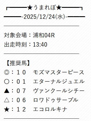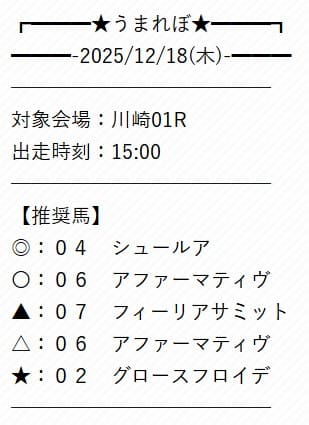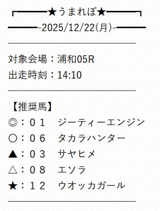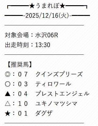 うまれぼの無料予想調査1レース目は12月18日名古屋7R。