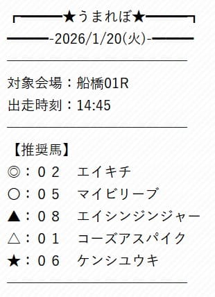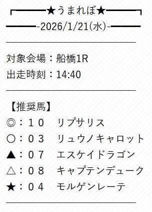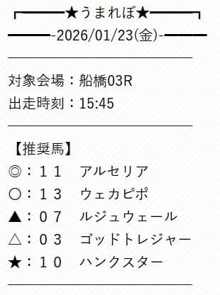 | レース名 | 船橋3R | 船橋1R | 船橋1R | 大井9R | 大井6R |
