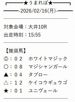 - 01/16 大井9R ワイド 2,300円的中