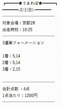 - 01/25 京都11R 三連単 1,592,640円的中