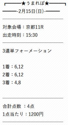 買い目の指示通りに馬券を購入して、うまれぼの「AI×プロ馬券師」の予想の実力を調べていきましょう。