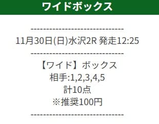 | 券種 | ワイド | ワイド | 馬連 | ワイド | 馬連 |