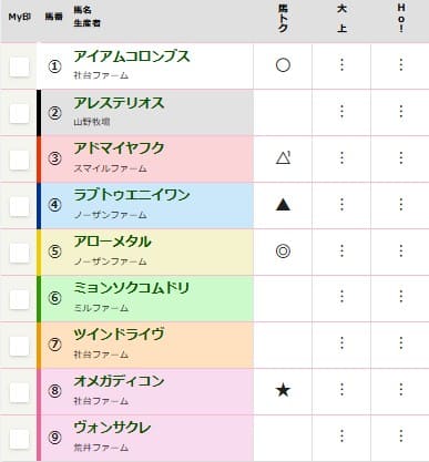 | ◎ | 9 | グランマエストロ | 2番人気 | 3.0 |