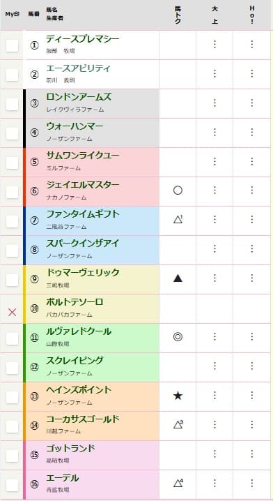 | ★ | 10 | グランセレスト | 1番人気 | 2.7 |