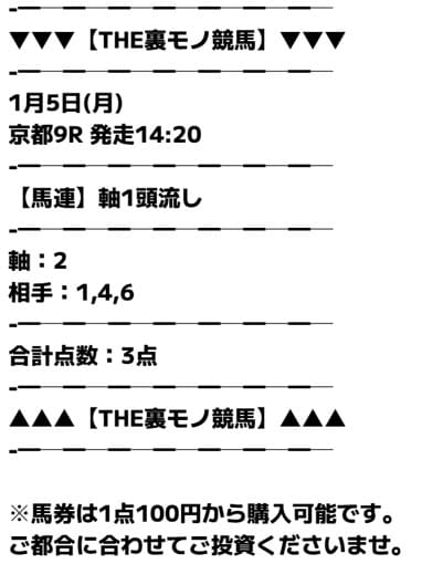 - 01/14 京都9R 馬連 ハズレ
