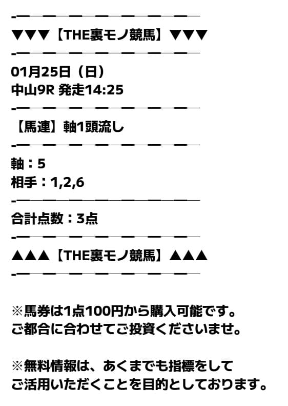裏モノっていうけど、表向きのちゃんと予想をくれるから最高だよ!今日もさっそく参加したけど的中するかわくわくしてる!!