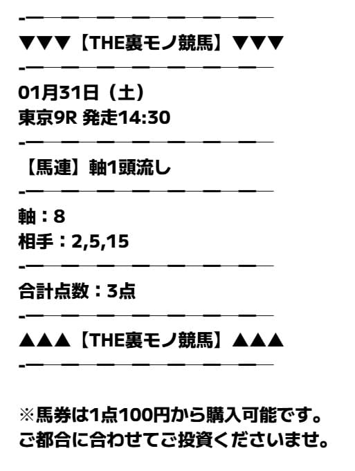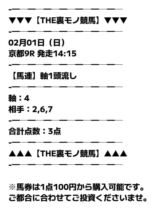 THE裏モノ競馬の買い目はシンプルで見た瞬間に理解できるという声が多いです。